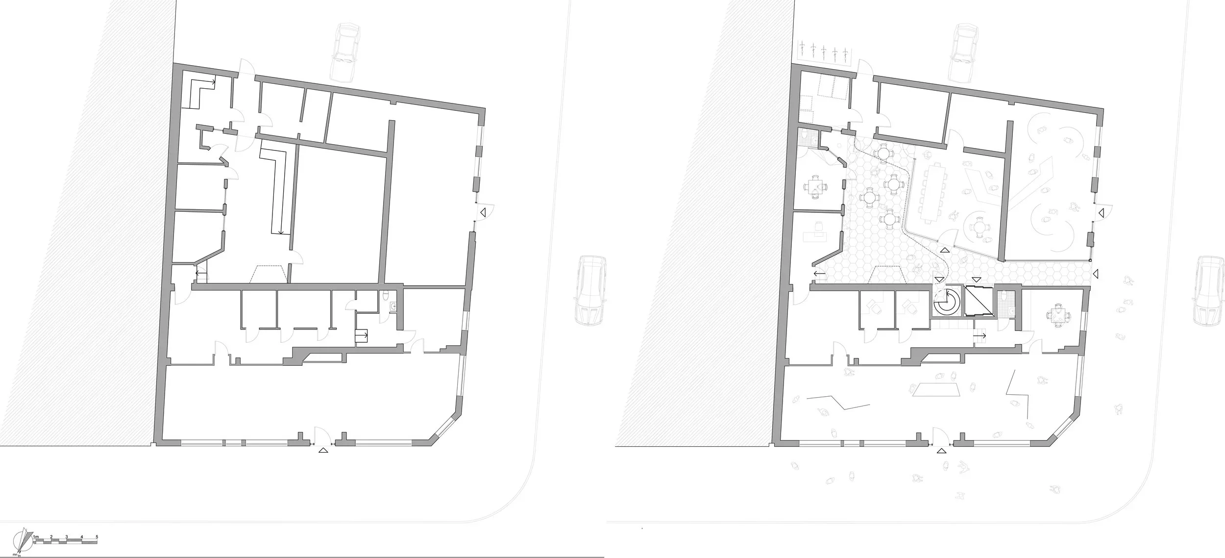 This family owned commercial property in the centre of Halmstad dates back to the early 1900's. The project involved the careful renovation of existing facade and the repurposing of the internal courtyard together with the addition of extra floor space. The project is guided by respect for the history of the building and is comprised of both renovations to existing floor plans and the addition of new floor plan layouts. By reopening the original carriage passage way the previously closed courtyard is once again linked back to the street and the idea from the clients was to create a shared space - "coffice" - for the many one-person-companies and startups in the area. The existing qualities, peculiarities and characters of the building dating back to the 1920's are retained towards the street whiles the internal courtyard has its original brick facade reinstated. The courtyard is complimented by a decidedly new corten addition that hugs the belly of the building like a soft ribbon, which solves the issue of linking the isolated wings of the building with a shared circulation area.