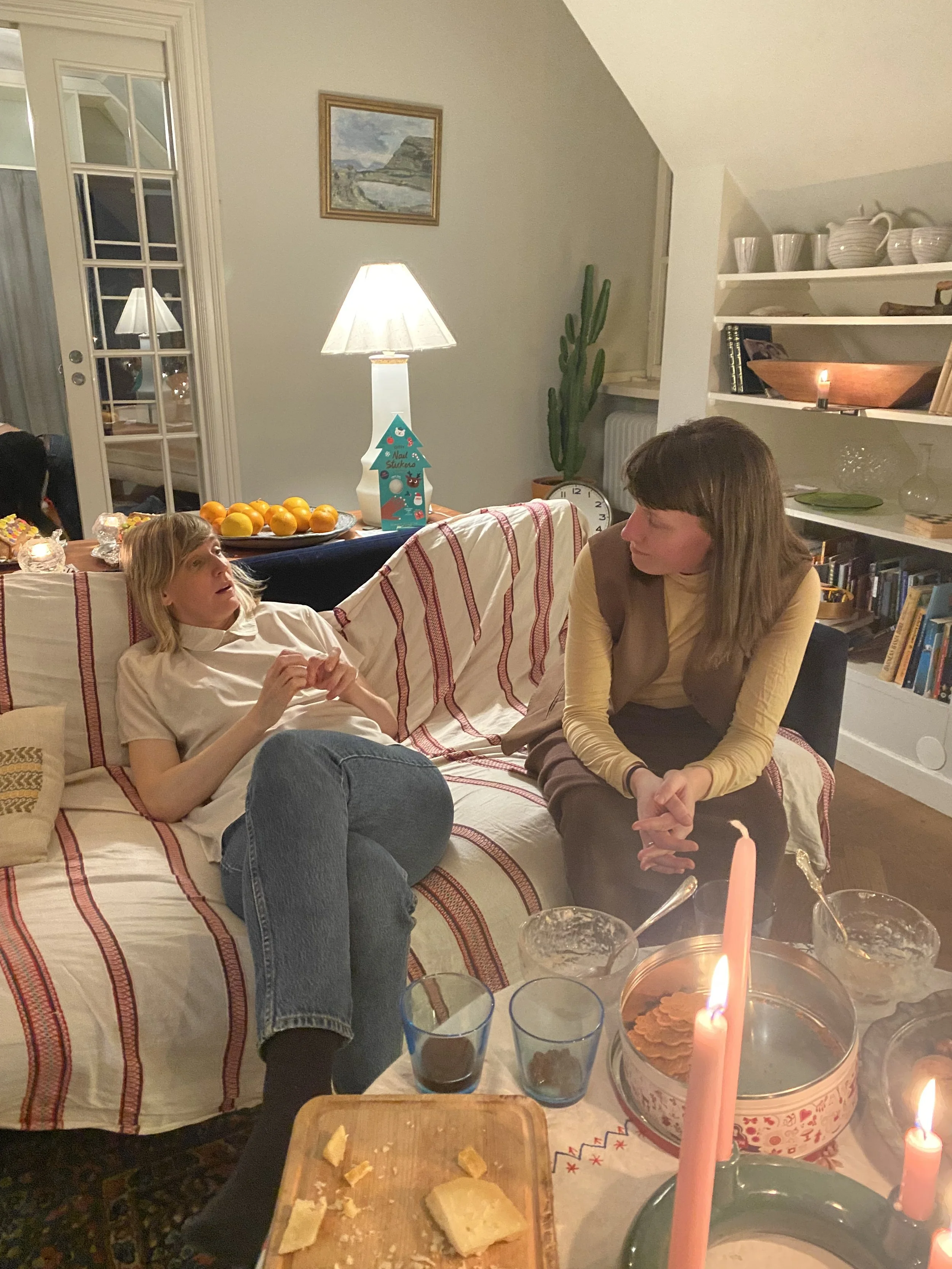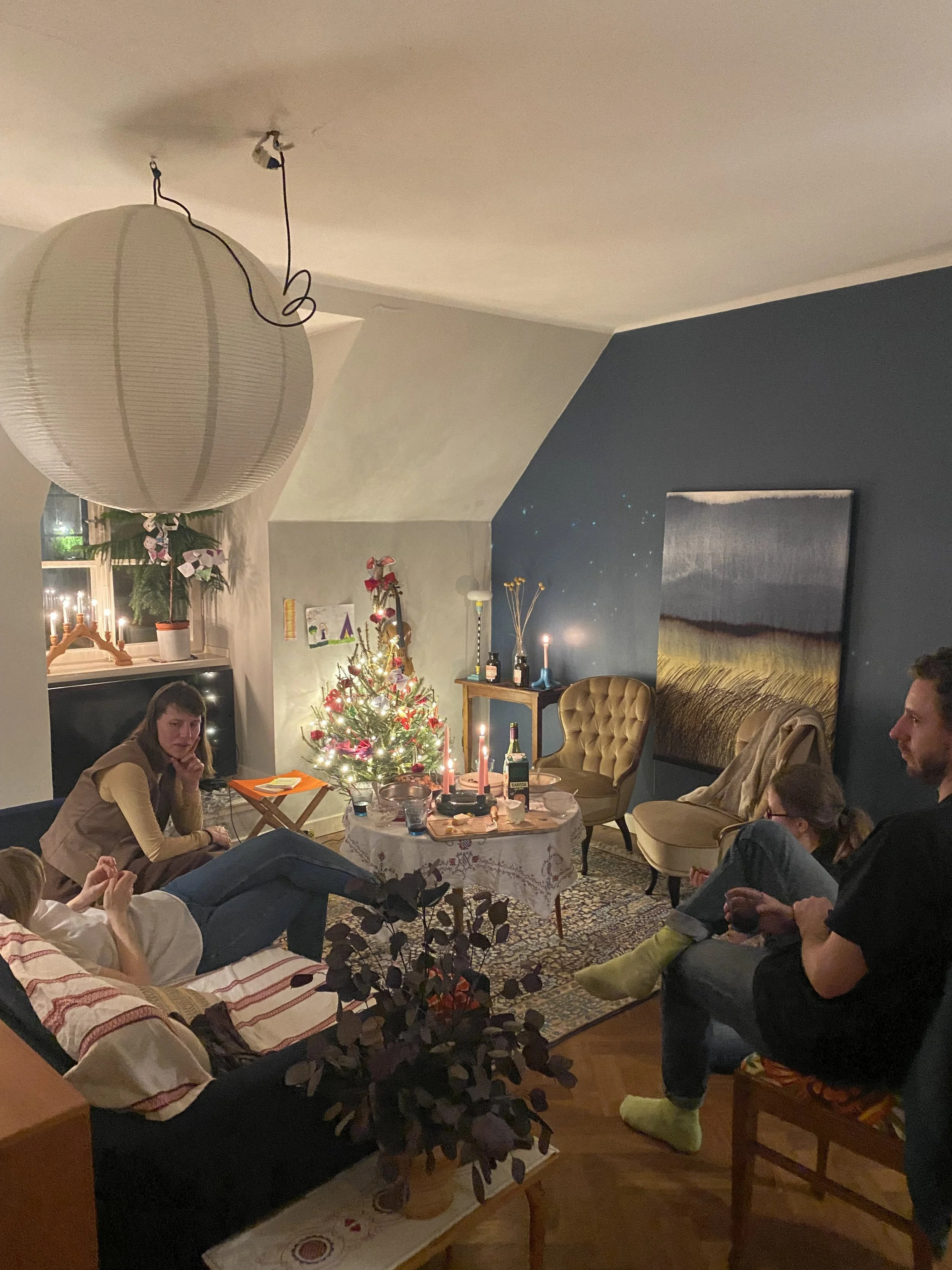 The setting is a gathering in the Old Town in Stockholm, just before Christmas. The focus is on conversation, reading, and critique of new writing or philosophical ideas. Semi-structured with the host starting off reading a letter, essay, or literature summary aloud, then open the floor to discussion.
