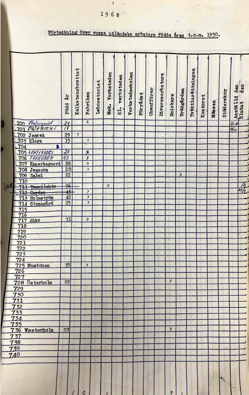 At some point he enters the Swedish offical records and I find him as a line item in Cementas "Förteckning över vuxna utländska arbetare". An "X" marks the spot. He could be found in Fabriken. His leaving date is recorded as the 28/2 in 1970.